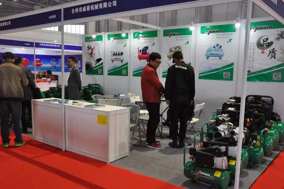台州威豪精密机械是从事空气压缩机系统及压缩空气后处理设备的专业企业,他们带来了螺杆压缩机、活塞压缩机、直联便携式压缩机等产品参会,无油环保的效果、标准鲜明的VI系统让参观的客商充分感受到一个企业的素质。