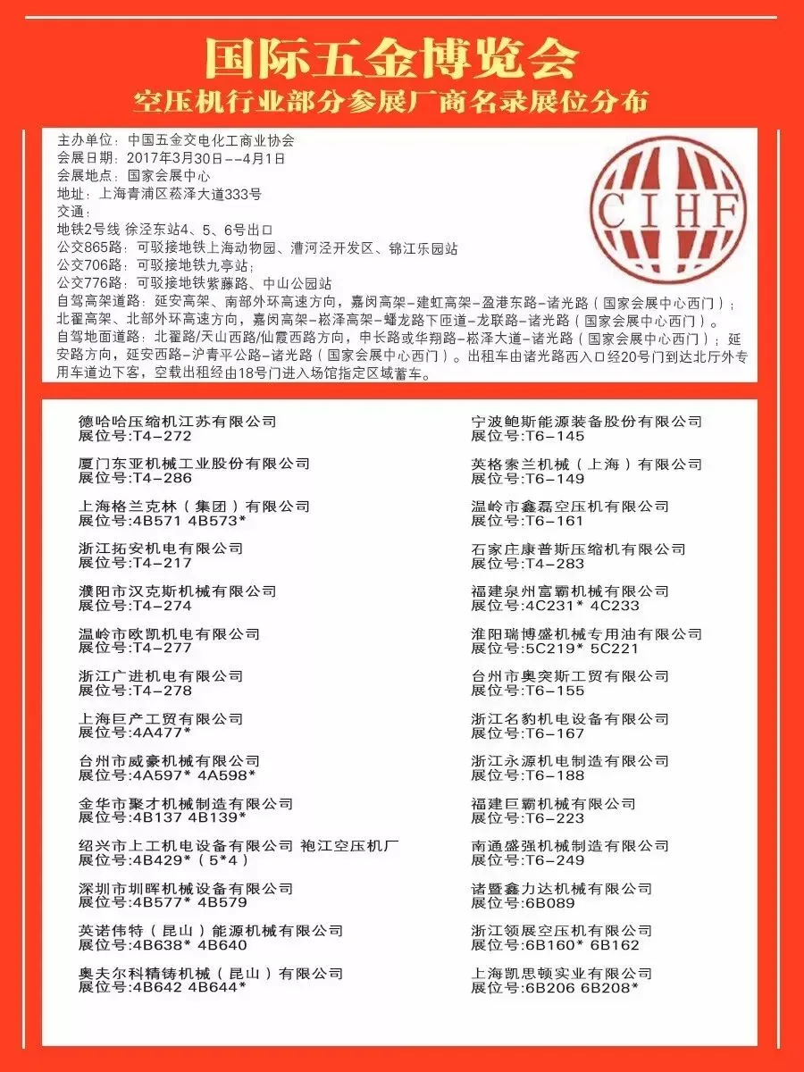 五金博览会——制造业的盛宴,行业的风向标——明天将进入最后一天,空压机行业在会展中的倾情演绎给大家留下了深刻印象。博览会期间,来自五湖四海的商家在此聚会,设计的理念、发展的潮流,节能的趋势在这里交流融汇,有的厂家推介了产品,有的企业展示了形象,还有的则通过观摩学习发现了差距,找准了定位。在国家供给侧改革转型政策的指引下,像五金博览会这样的超大型交流平台不仅为厂商提供了机会,也为国家政策方针的落地创造了条件,希望孤心苦诣于实业的企业家们能藉此发现“新常态”下的出路,也希望中国空压机行业在经历转型升级的历练后,迎来希望的曙光!