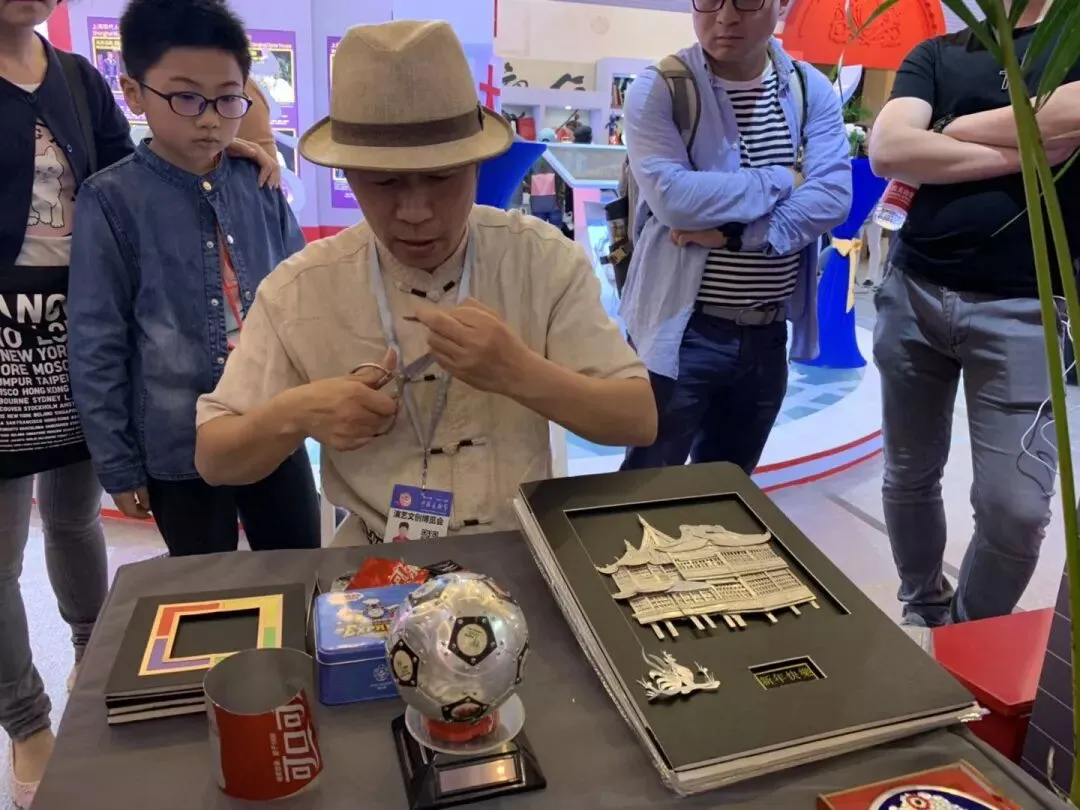 上海展区的易拉罐工艺品现场制作让不少人驻足,师傅表示,几分钟便可完成一个生肖作品。(黄启哲摄)