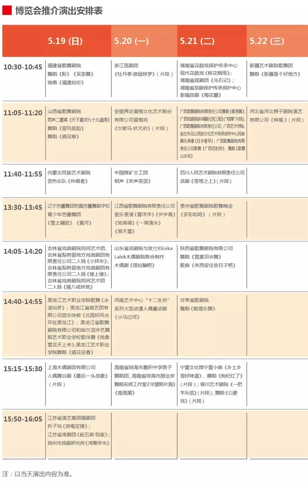 中央大厅主舞台还将有各省市24场推介演出在四天里陆续上演。