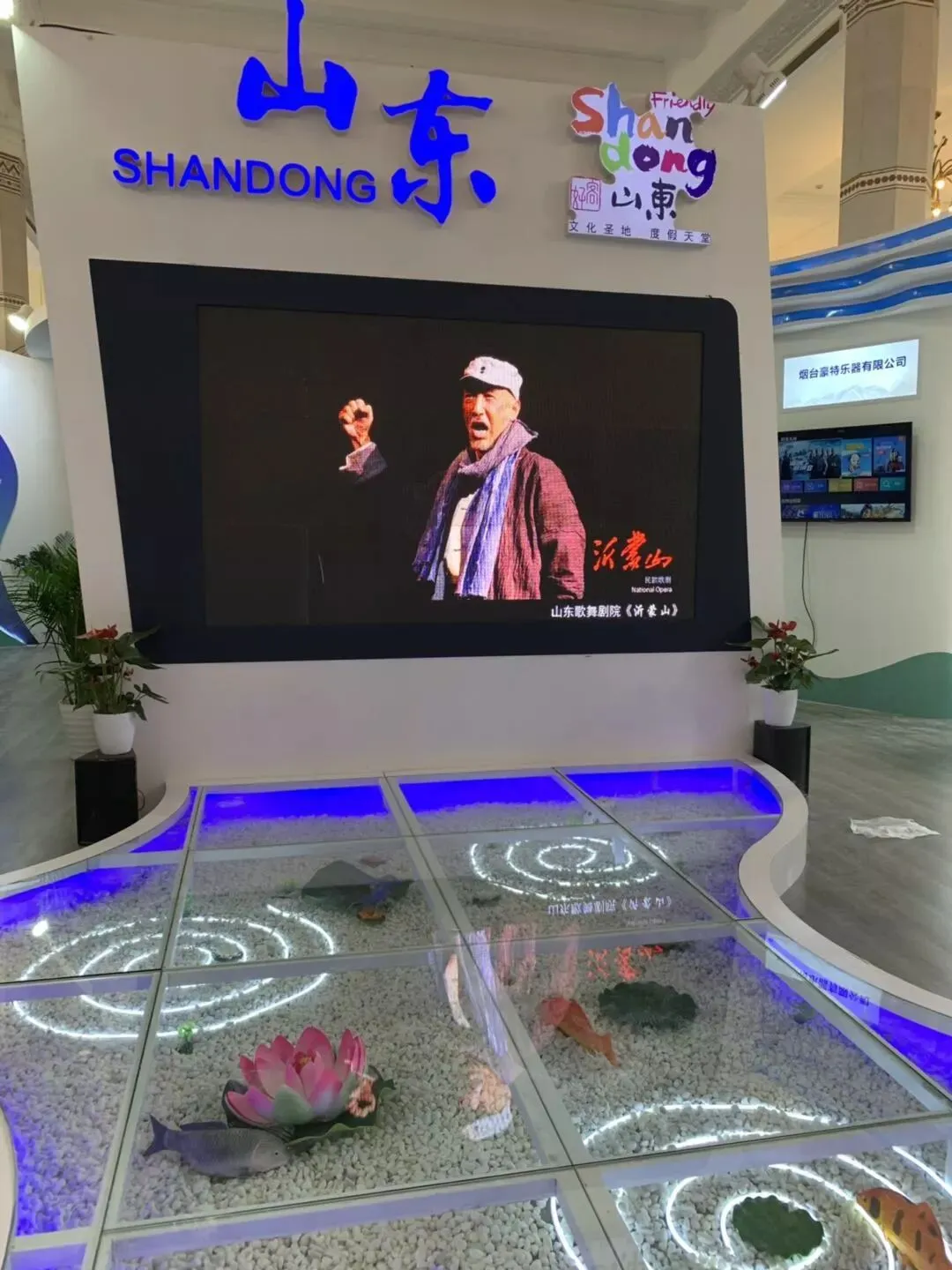 此外,山东展厅将齐鲁传统文化与现代科技、文化和旅游完美结合,融合山东“一山一水”的自然景观,突出山青海蓝的地域特色,运用声光电等最新视听技术展示优秀舞台艺术作品、文旅创意产品、群众文化活动。(黄启哲摄)