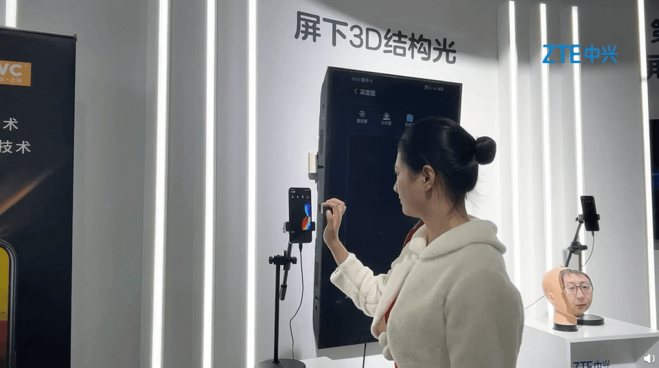 对于屏下摄像头手机来说,比提升像素密度更难的,是前置相机功能性的提升。中兴这次还首发了屏下 3D 结构光技术。将 3D 结构光也做到了隐于屏幕下方。