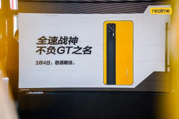 比较有看点的,还是 realme 即将推出的 GT 旗舰手机。虽然 MWC 上并未展出真机,但通过现场海报以及官方宣传图,我们已经知道它的样貌。