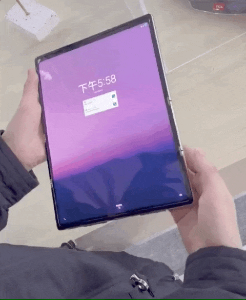另一款采用了双内折折叠形态,搭配虚拟物理感键盘,能对折在手机—平板—笔电多形态切换,将这种一屏多用的理念推得更加极致。