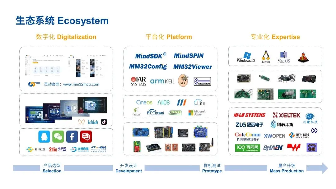 灵动客户涵盖智能工业、汽车电子、通信基建、医疗健康、智慧家电、物联网、个人设备、手机和电脑等应用领域。灵动是中国为数不多的同时获得了 Arm-KEIL、IAR、SEGGER 官方支持的本土 MCU 公司,并建立了独立、完整的通用 MCU 生态体系。灵动始终秉承着“诚信、承诺、创新、合作”的精神,为客户提供从硬件芯片到软件算法、从参考方案到系统设计的全方位支持。