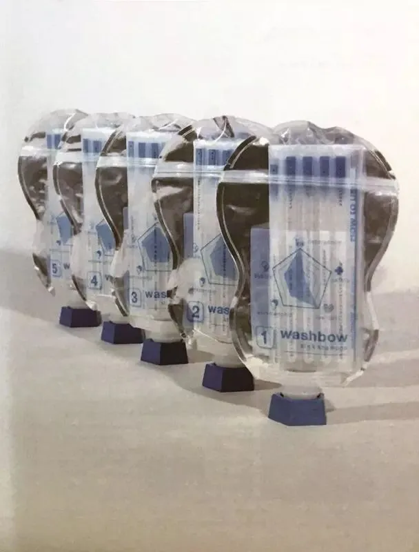 一款可以了解洗发水成分的洗发套装。该设计将洗发水里的所有成分单独放在一张试纸上,把试纸放在水中按顺序融化后,就会生成洗发水,并且试纸上会显示出它的比例、成分和作用等内容。用户通过自制洗发水,可以获得不一样的产品使用体验。