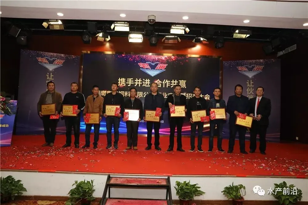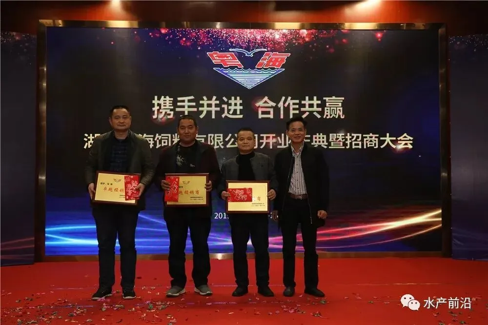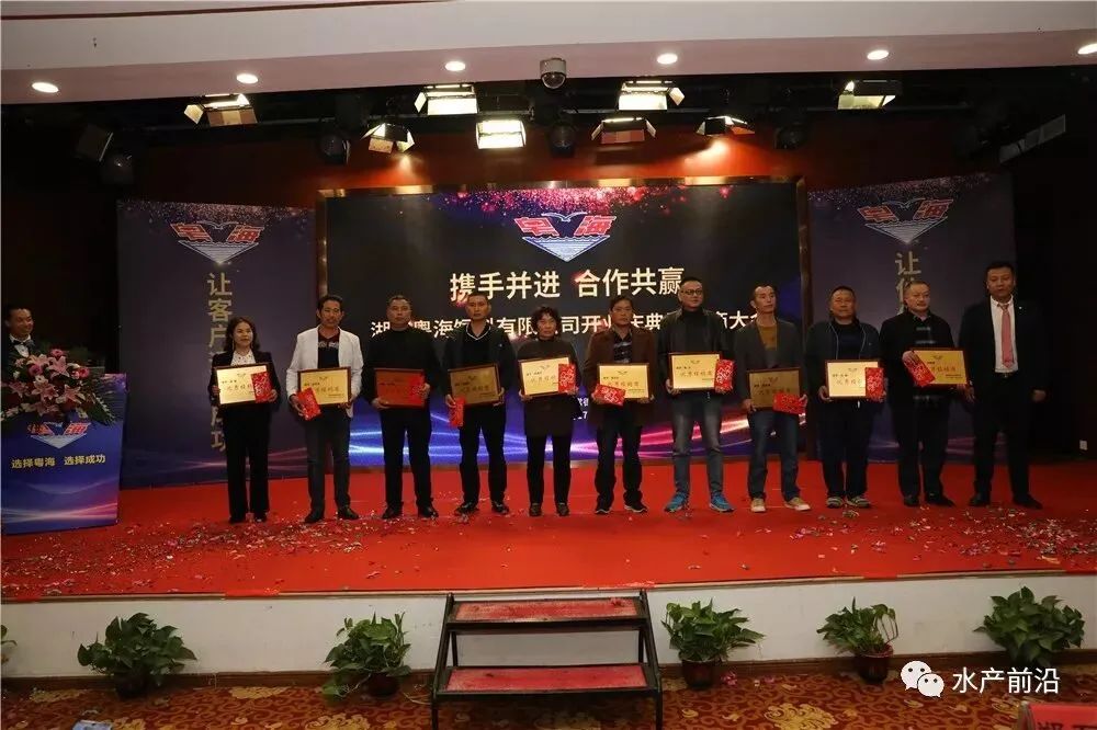 活动期间,还为优秀经销商进行了颁奖。来自湖南华容的经销商代表严岸舟发表感言时说,自2016年跟广东中山粤海,以及现在湖南粤海合作至今,销量从最初的几十吨增至今年的2000吨。“粤海加州鲈料得到广大养殖户朋友们的认可,在保证质量的同时产品不断创新,销售人员也以积极热情的态度来协助开展每一次大型活动及日常的工作协助。”严岸舟表示将一起见证湖南粤海的成长,用实际行动为其发展尽绵薄之力。