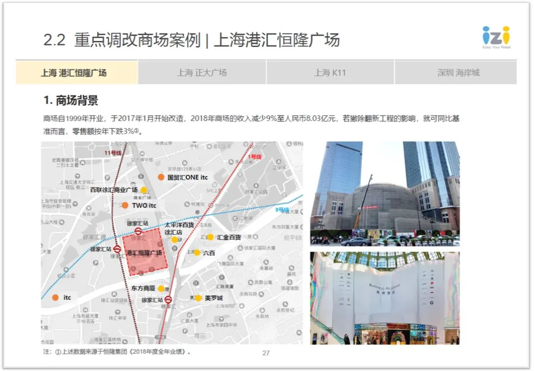 全国重点商业项目动态方面,一季度由于新开业项目不多,因此更多会聚焦在上海港汇恒隆广场、K11等重点调改项目的进展报告: