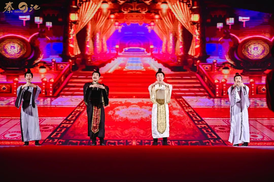 百礼之会,以艺载道,非酒不行。《东方之神 秦酒之源》、《千年礼韵 酒道迎宾》、《千年传承 御赐神池》舞台剧、产品走秀等节目琳琅满目,品牌形象大使赵保乐先生也特意为本场东方礼宴邀请了黄梅戏名家吴琼、著名歌唱家魏金栋、京剧梅派传人刘亚新、黄梅戏编导网红朱登、著名影视制作人贺志宝等各界领军人物登台献唱,倾情奉献一场黄梅盛宴,将现场气氛推向高潮。