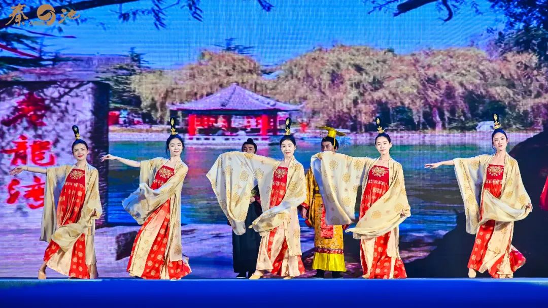 夜幕降临,光影璀璨,目之所及是造化奇妙,耳之所闻是袅袅清音,一首首经典黄梅戏曲目《女驸马》、《贵妃醉酒》、《滕王阁》……极具仪式感、美感和文化感,使得秦池文化、曲艺文化、民乐文化、传统文化相互交织、相互映衬,在各美其美的同时,又融合成美美与共的和谐共振。