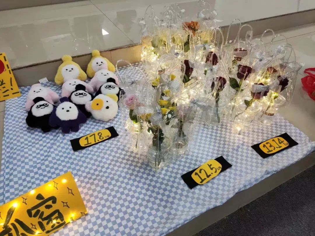 走进展销会会场,各类商品琳琅满目,同学们纷纷发挥自己的动手能力,各种手工制作的物品吸引了学院曾欧书记、汤志勋副院长等不少师生前来"淘宝“:鲜花,化妆品,毛绒玩具...每个摊位都各具特色,售卖的物品多种多样。同学们穿梭在各个摊位之间,大家兴致勃勃的挑选着自己心仪的物品,每个人都有所收获,满载而归。