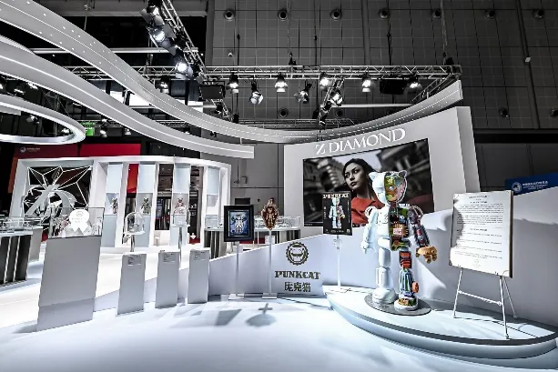 20世纪初,铂金因其坚韧恒久的质地和纯粹的质感而受到全世界的追捧,被各大品牌广泛应用于珠宝制作中,掀起一阵铂金珠宝新浪潮。同时,铂金也被奉为装饰艺术时期(Art Deco)的代表贵金属。专注于纯净培育钻石的高端珠宝品牌Z DIAMOND卓缔梦,携百余件臻钻珠宝再度亮相消费品展区6.2馆B5-01。期间,品牌与方文山共同推出的专案联名款首饰设计首秀首展,以闪耀无界的艺术理念为消费者带来多重视觉享受。方文山原创IP庞克猫系列作为华流文化情感及现代艺术形式的载体,一度引发年轻人的追捧热潮。本届进博会,方文山联名款首饰设计首次亮相6款:“花间影”、“鹊桥度”、“尽相逢”、“醉清风”、“少年游”、“木兰词”,将庞克猫IP文化引入珠宝设计,使纯美钻石和潮流艺术进行灵感碰撞,为消费者带来独一无二的时尚消费体验。除了璀璨多姿的钻石珠宝作品,Z DIAMOND卓缔梦还带来了庞克猫系列潮玩公仔进行专区展示,品牌互动礼遇区的精彩活动同步进行。灯光耀映之下,纯美钻石熠熠生辉,互动展示区热闹非常,一时吸引了众多观众驻足欣赏。据了解,Z DIAMOND卓缔梦已连续四年参展进博会。作为多年好友, Z DIAMOND卓缔梦仅甄选TYPE IIA型大克拉纯美钻石,颗颗高净高色,绿色可持续,始终以至臻品质和华美设计而备受全球消费者喜爱。 诠释摩登风尚 」