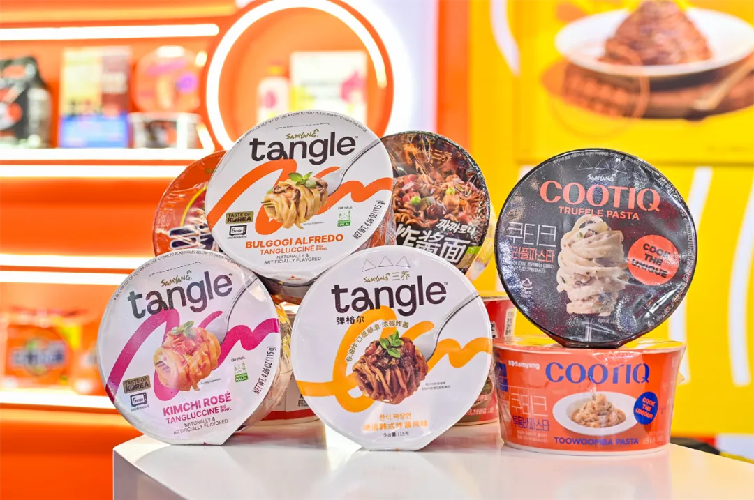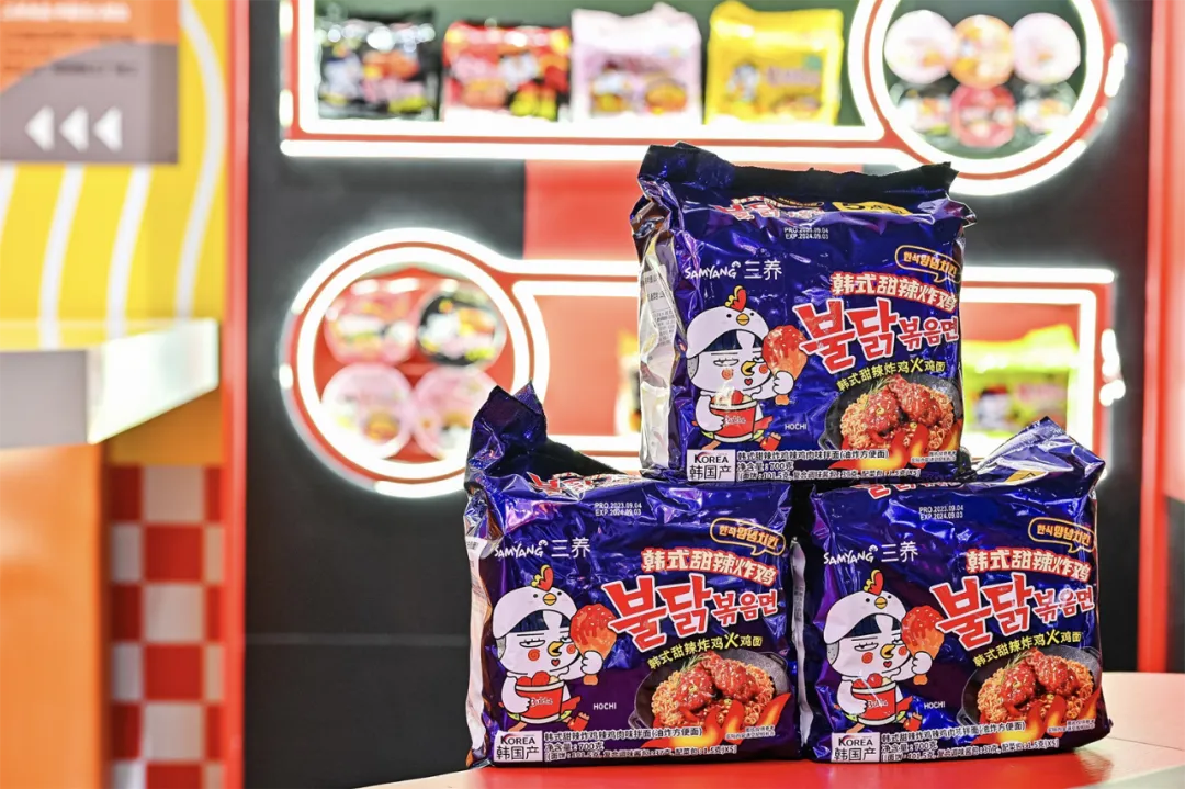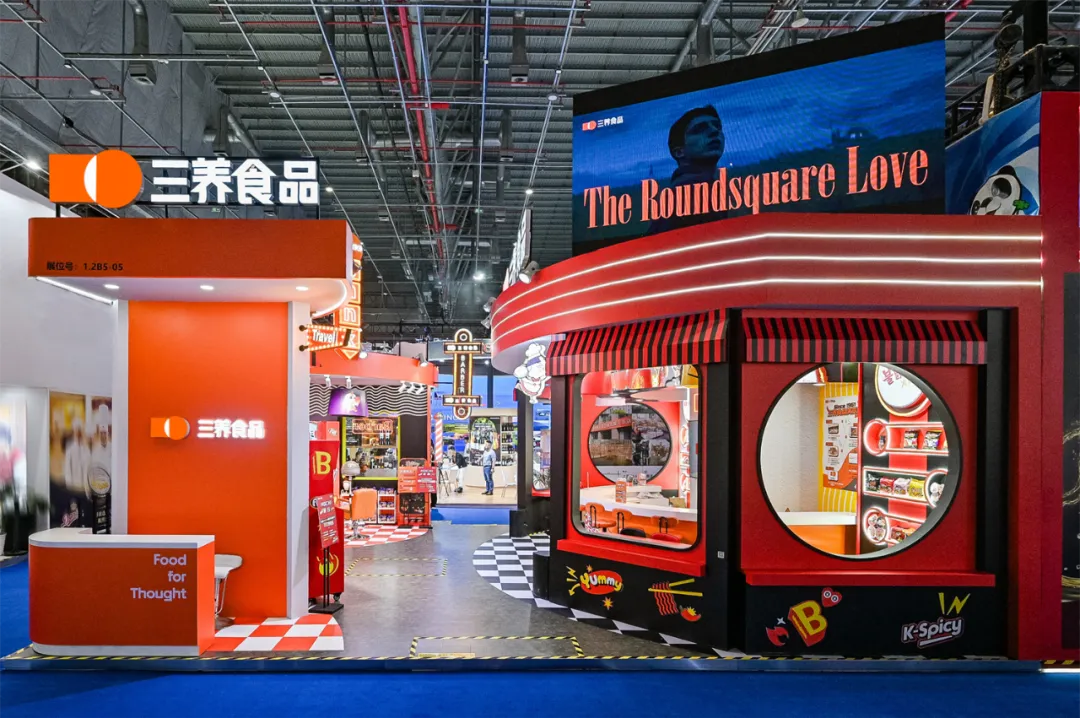 整个展馆的设计风格与三养方圆集团的最新品牌标识完美契合,以明亮的橙色为主色调,布局以 “方圆”标识的变形呈现,彰显出三养方圆集团“以养天地人为规矩, 自然成方圆”的责任担当,并传达其“打破不可能”的品牌精神。三养方圆集团此次展出的产品品类齐全,覆盖火鸡面系列、汤面系列、炸酱面系列、非油炸健康系列、酱料系列、膨化食品系列等,为中国消费者带来了丰富多样的优质美食。