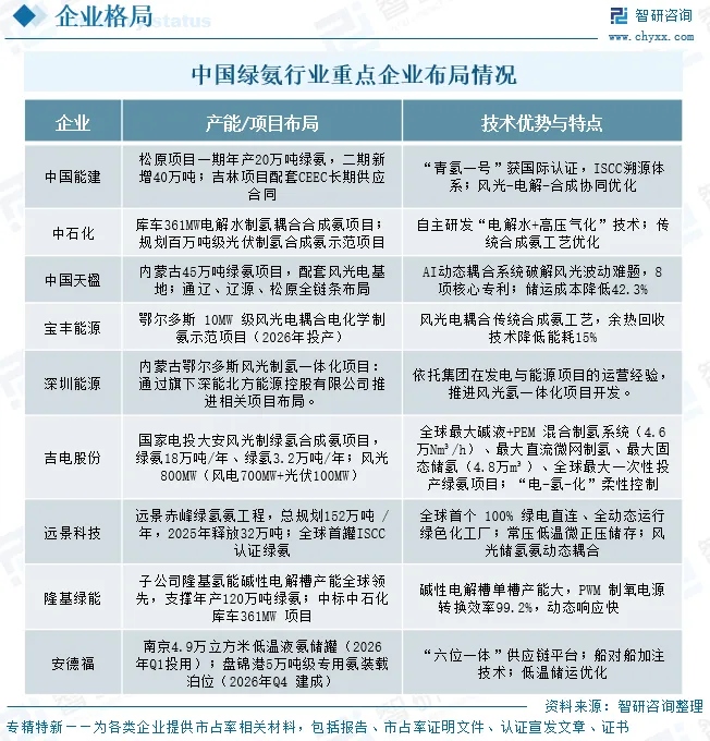 中国绿氨行业企业布局情况