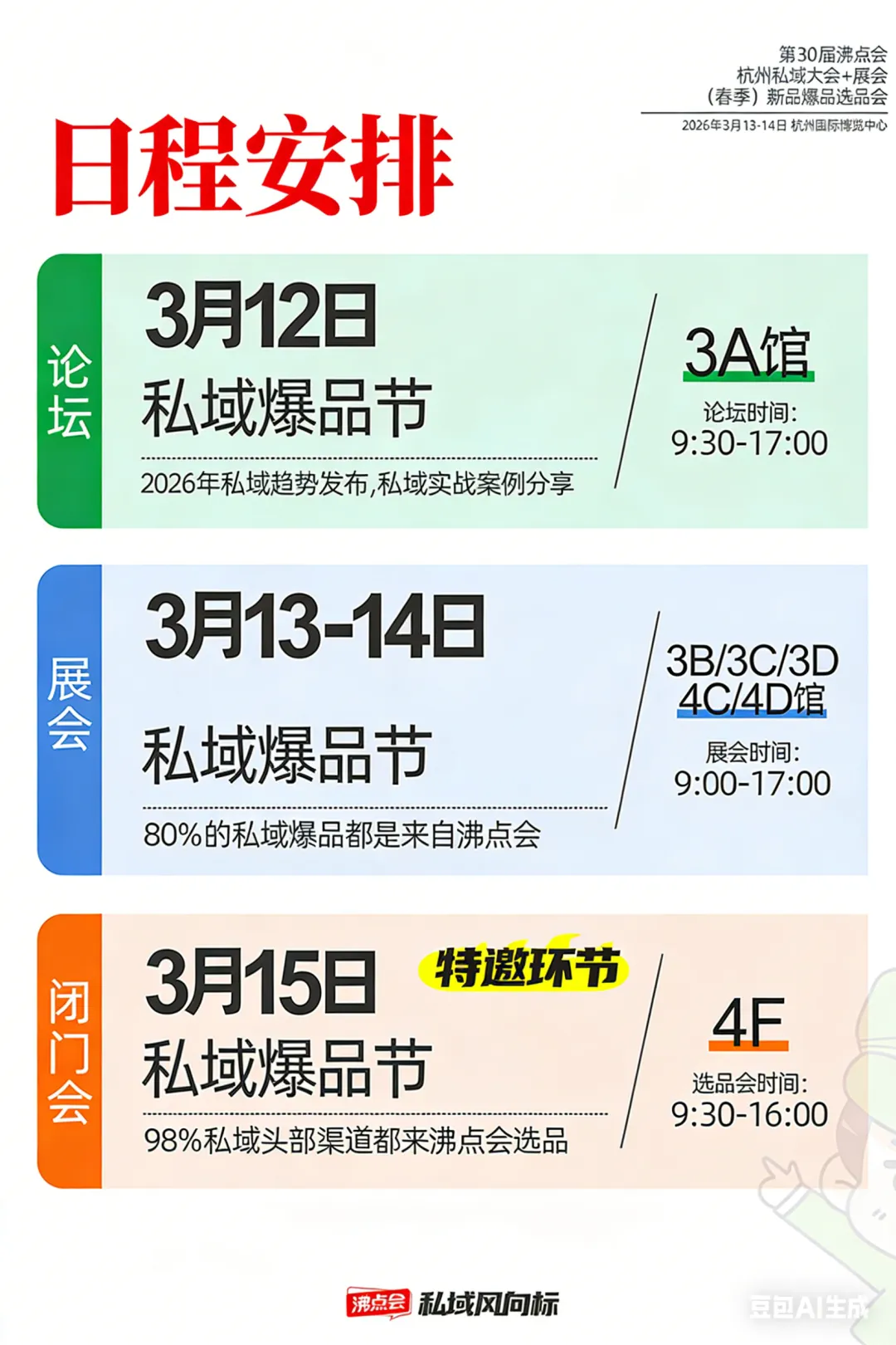从3月12日的趋势论坛,到13-14日的货源展,再到15日的闭门对接,沸点会用“四天三环节”的实效体系,把“给方向、给方法、给资源”这件事做到了极致。对于那些还在私域门外徘徊的人来说,这三天发生在杭州的一切,其实就是一份最生动的招商手册——**它告诉所有人:生意的本质是连接,而最高效的连接,永远发生在面对面的握手里。**