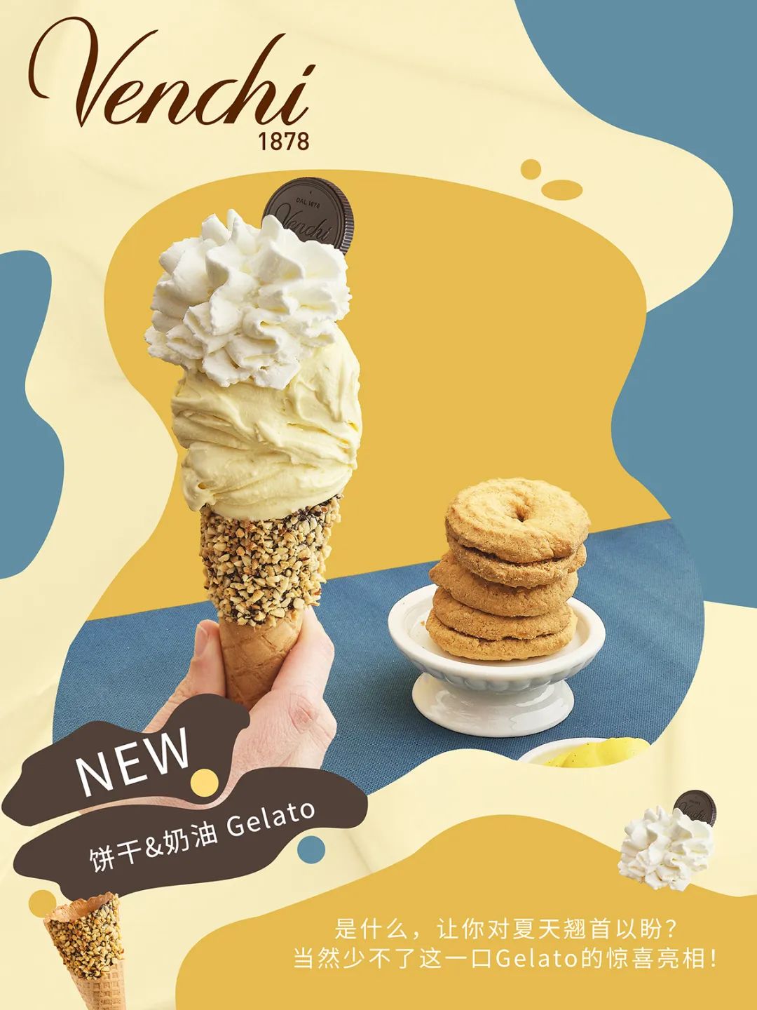 Venchi初夏新品「饼干奶油Gelato」,奶油冰淇淋细腻甜润包裹无麸质玉米粉酥脆饼干,完美平衡的口感,为心情施展治愈魔法。