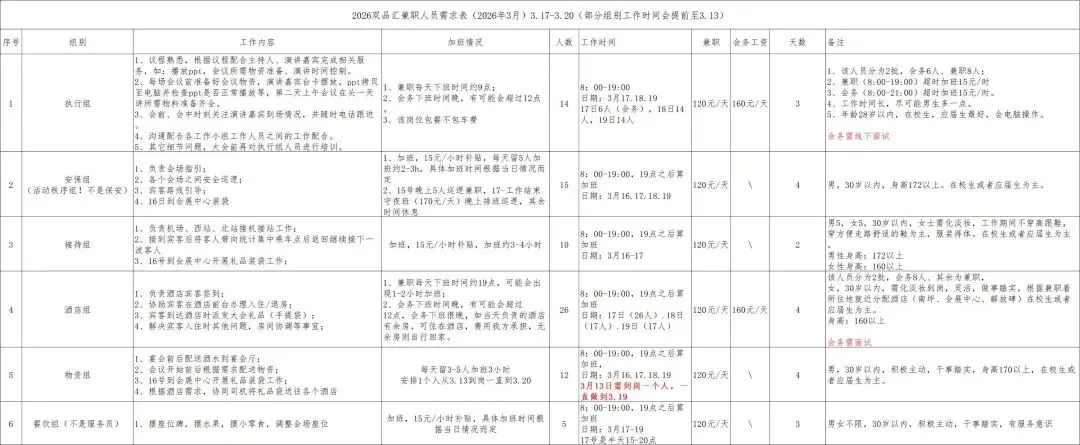 招聘要求:年龄16-35周岁,无案底或不良记录等,残疾人士需提前与带队老师沟通