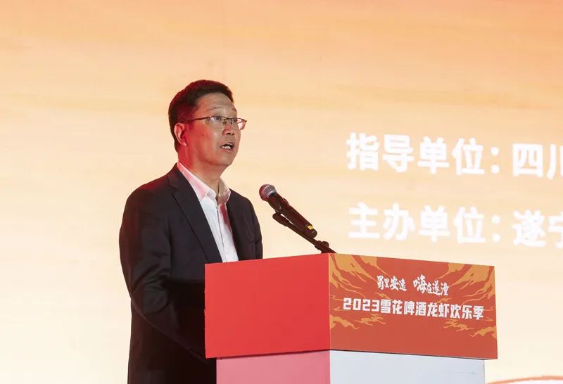 4月27日晚,“蜀里安逸·嗨在遂潼”2023雪花啤酒龙虾欢乐季活动在九莲洲湿地公园正式开幕。四川省商务厅党组成员、副厅长尹奇志出席开幕式并讲话。中共遂宁市委常委、宣传部部长,市总工会主席,遂宁高新区党工委书记涂虹;遂宁市政协副主席、市工商联主席、市总商会会长曹驰宇出席开幕式。副市长张智勇主持开幕式。重庆市潼南区副区长秦云兵通过视频向活动开幕表示祝贺。遂宁市船山区委副书记、区长陈绍坤致辞。