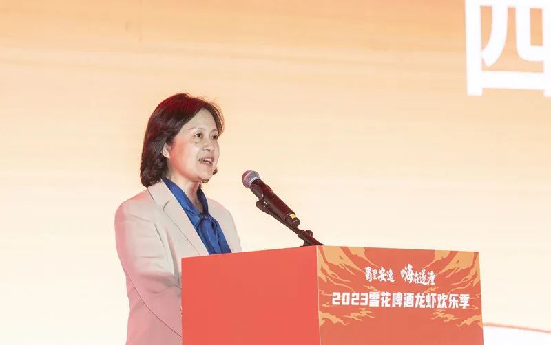 开幕式上,华润雪花啤酒(四川)有限责任公司四川营销中心市场总监刘洋、联合利华饮食策划西区销售总监黄伟忠作了发言。