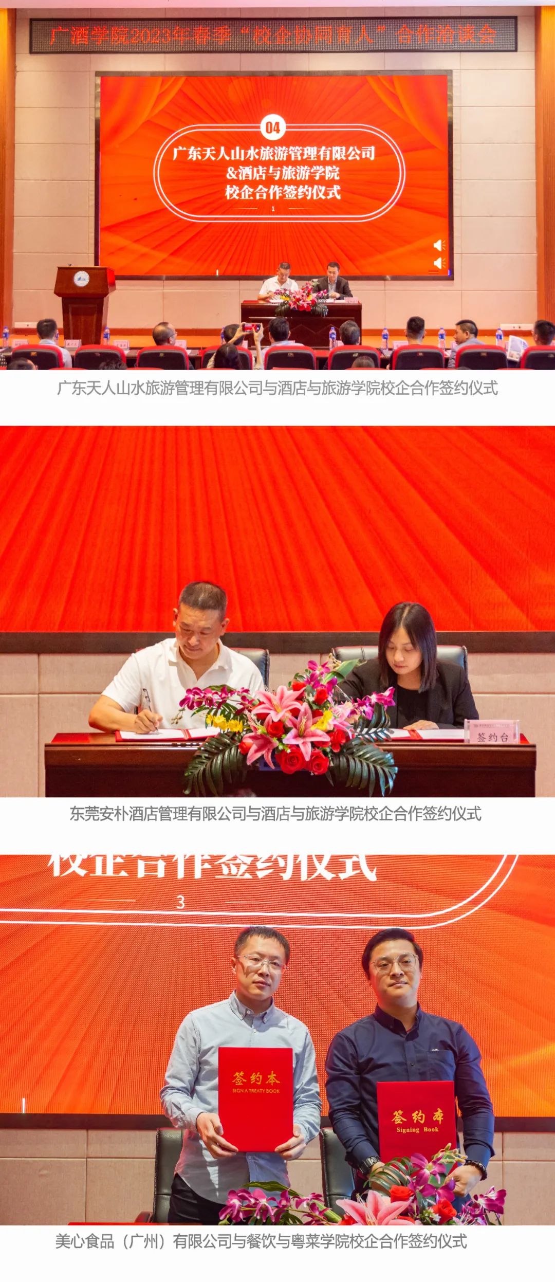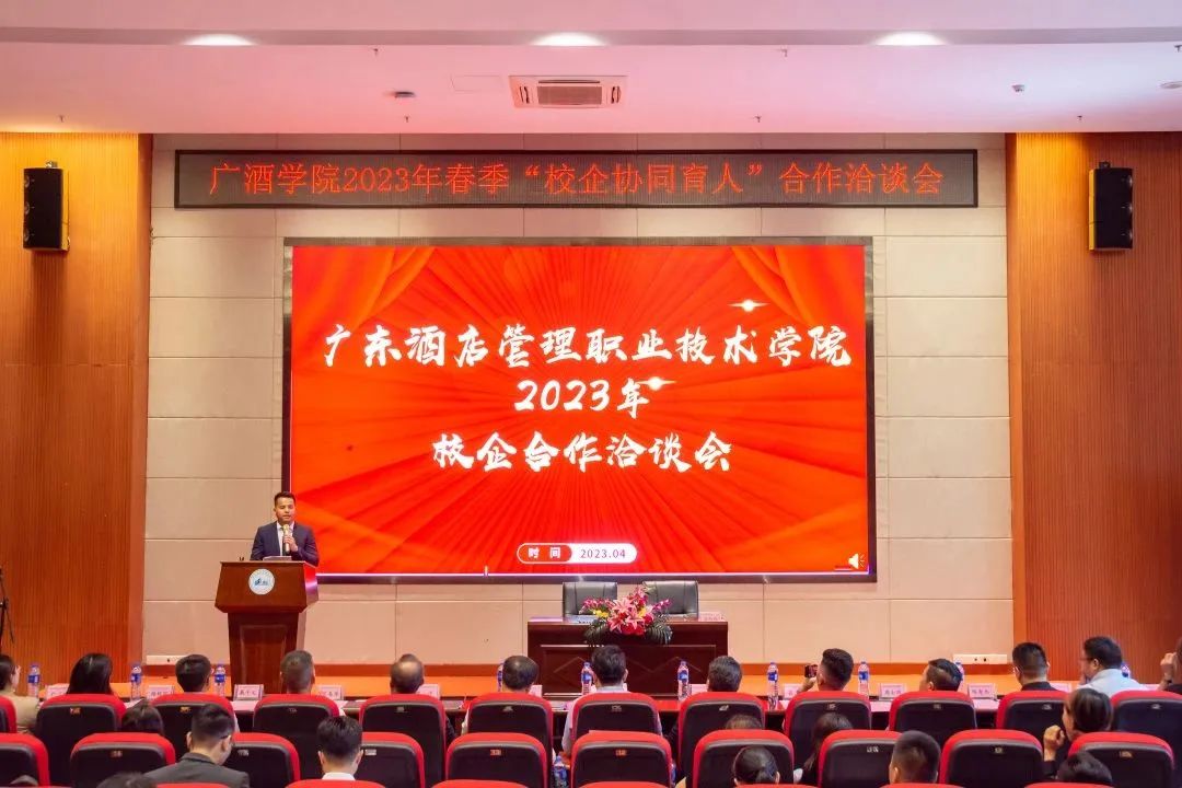 为搭建科学人才培养机制,加速推进产教协同育人,进一步提高人才培养质量,实现毕业生高质量就业,4月26日,广酒学院2023年春季“校企协同育人”合作洽谈会在学术报告厅隆重举行。学校副校长张天阳、就业与校企合作办主任曾祁、各二级学院院长和有关职能部门负责人以及广东华中科技大学工业技术研究院、广东智汇科研技术有限公司、九毛九集团太二餐饮连锁有限公司等42家企业代表参加了洽谈会。