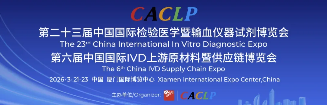 第二十三届中国国际检验医学暨输血仪器试剂博览会(2026 CACLP)将于2026年3月21日~23日在厦门国际博览中心举行!