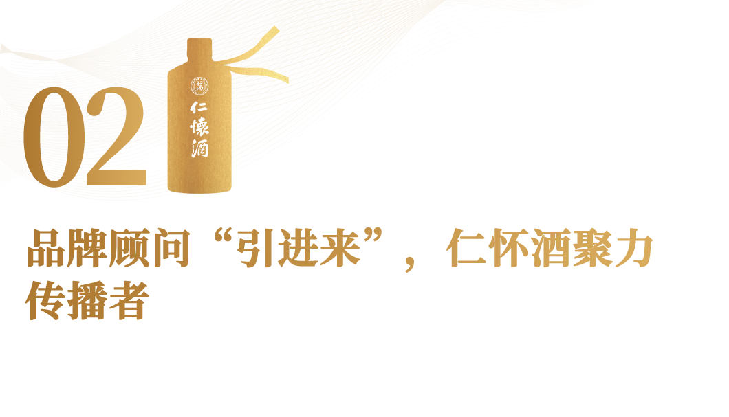 山东魏桥创业集团董事长张波、银丰集团董事长王伟、山东创新集团有限公司董事长崔立新、蒙草生态环境(集团)股份有限公司董事长王召明、内蒙古开远实业集团有限公司董事长郭建军、山西宏源集团董事长马长江等优秀企业家均被聘任为仁怀酒的品牌顾问。2023年,仁怀酒将聘任300位知名企业家成为仁怀酒的品牌顾问。品牌顾问是仁怀酒的重要意见领袖,也是仁怀酒品牌文化的重要传播者。