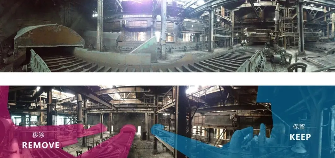 “复原体设计”,再现鞍钢风采。设计团队以现有工业遗产为基础,将古董高炉搬迁移位,与烧结机厂房结合展示,还按老厂的建筑设计图纸复原,完整保留烧结机厂房其中一条生产线,将烧结机厂房所有外立面窗户,恢复为上世纪50年代的工艺和材料,加上修缮加固的厂房结构、巨大的航吊和保留下来的高炉送料口,力争还原老厂房的原本面貌,为观众呈现一份原汁原味的工业遗产文化大餐。