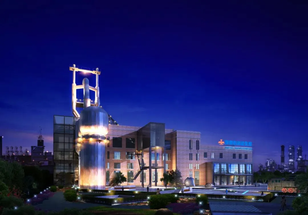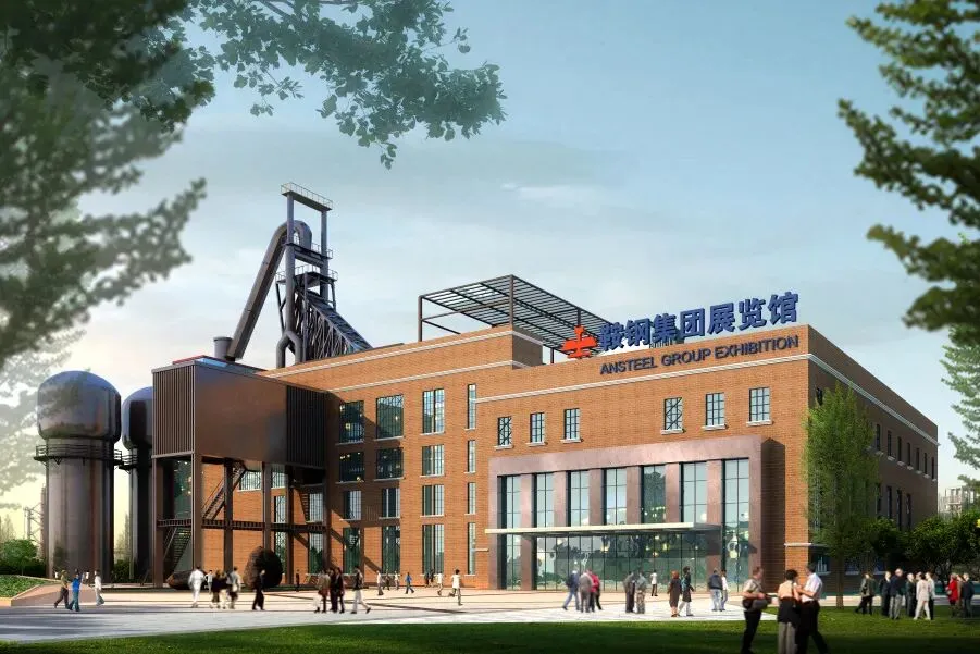 坐落于辽宁鞍山老工业基地、“中国钢铁工业摇篮”之地的鞍钢博物馆,总占地面积6.7万平方米,其中主体建筑面积1.28万平方米,配套钢铁主题公园面积约5.5万平方米。该博物馆为中建装饰设计施工总承包,由时任中建装饰所属海外装饰展陈分公司党支部书记、经理赵力等人组成的设计团队通过“修旧如旧 建新如故”的设计理念,将始建于1953年的炼铁二烧厂房和始建于1917年的炼铁一号高炉,两座工业遗产合璧,构建起富有钢铁特色的现代化博物馆。