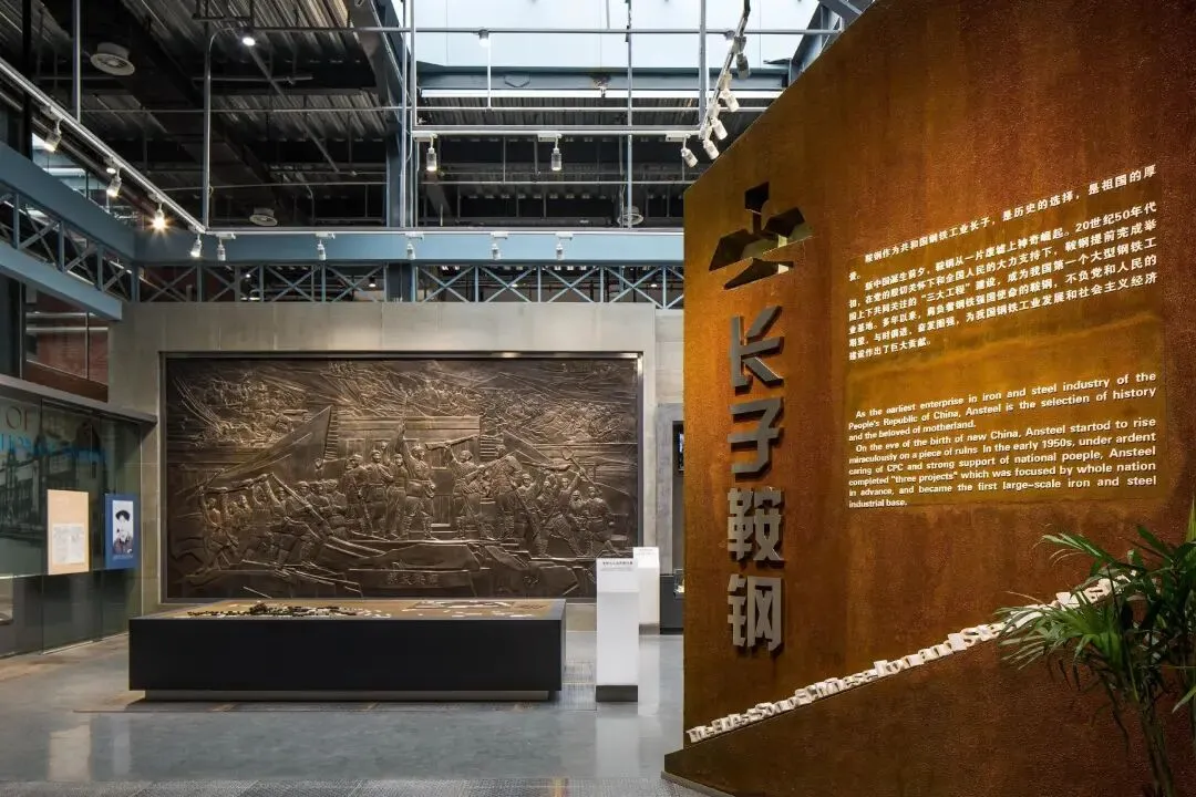 “新中国钢铁工业从这里开始”是鞍钢博物馆的立馆主题。设计团队注重通过新的展陈方式与留存下来的旧设备设施产生情境交互,以历史和发展的视角,集中展示中国钢铁工业建设发展的奋斗历程。