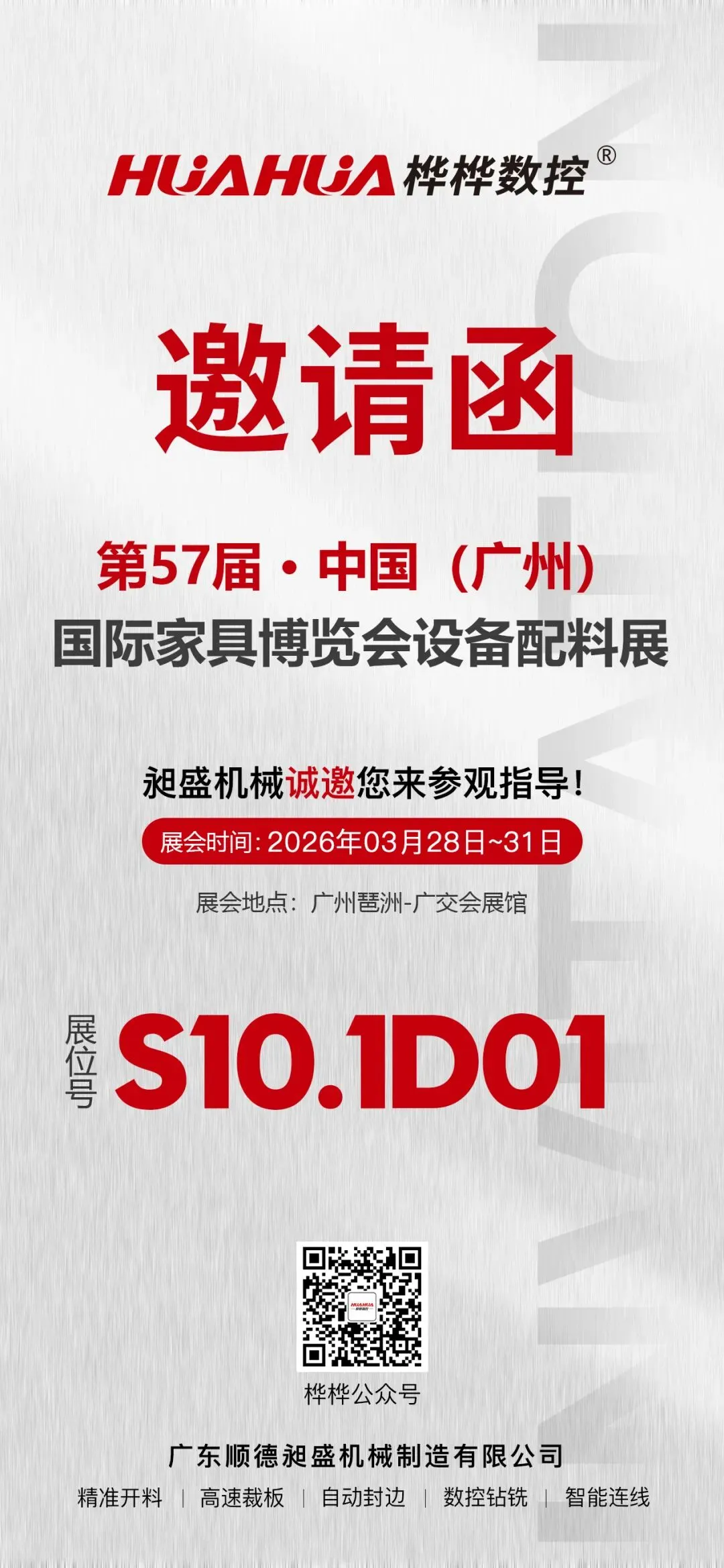 桦桦数控展会预告 | 第57届中国(广州)国际家具博览会设备配料展,昶盛机械诚邀您亲临现场!