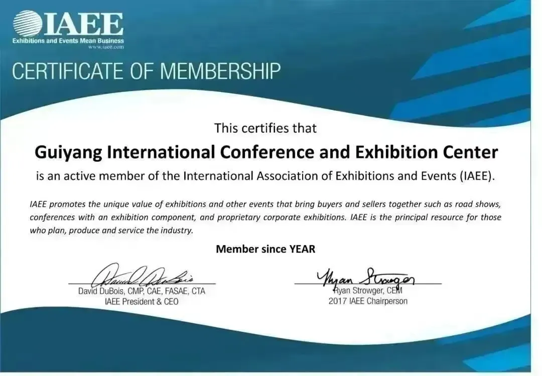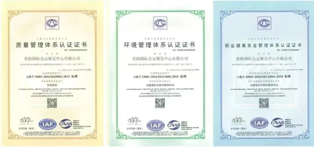 通过ISO9001、ISO14001、ISO45001体系认证。是UFI(国际展览业协会)正式成员、IAEE(国际展览和项目协会)会员、中国展览馆协会会员、贵州省省级服务业龙头企业、贵州省文化产业示范基地。获得中国十佳会展中心奖、中国十佳会展中心管理奖、最具影响力会展场馆品牌奖等荣誉。