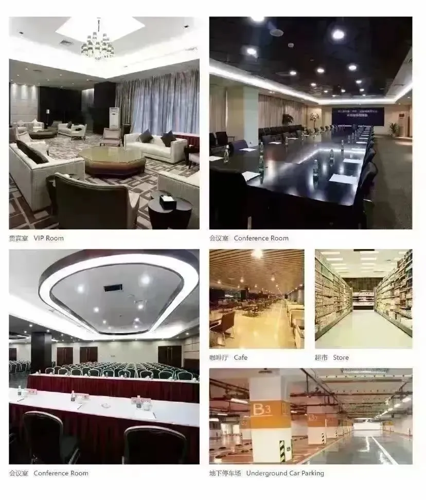 设有贵宾室、会议室、咖啡厅、地下停车场等配套。