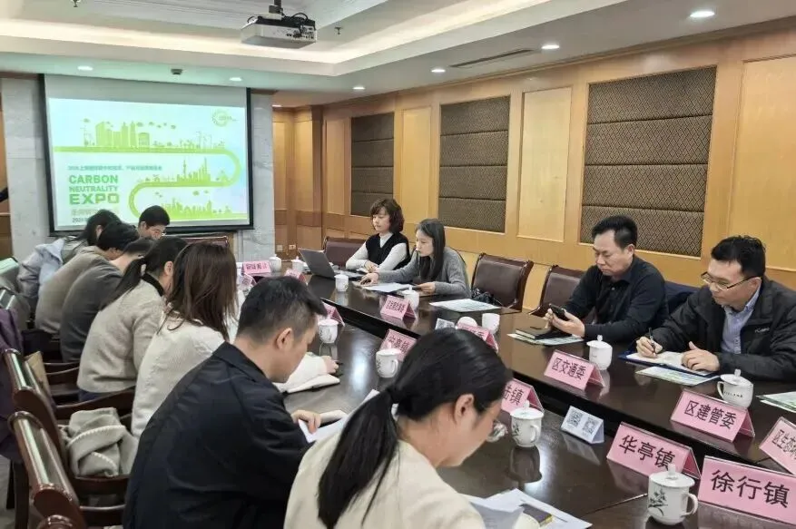 会上,嘉定区发展改革委进行动员并作工作部署,市贸促会国展公司先回顾了第三届上海国际碳中和博览会的成果并介绍第四届展会的筹备情况。