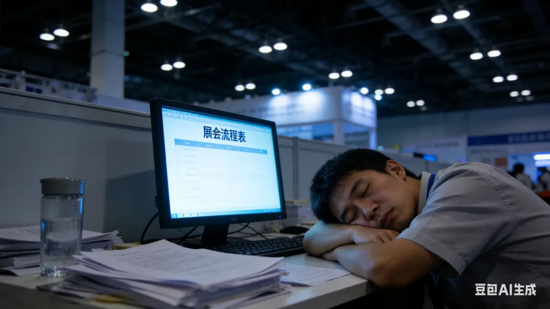 累到直不起腰、饿到随便扒两口饭,早已是会展人的日常。
