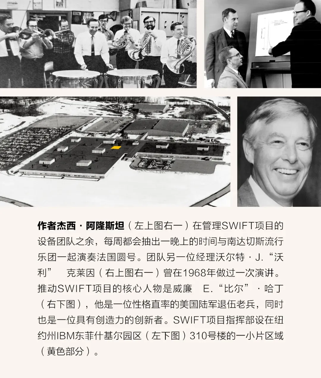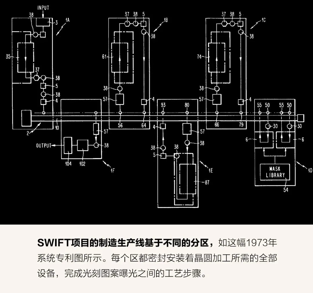 在一次员工会议上,哈丁大声朗读了海伍德•布鲁恩(Heywood Broun)的短篇故事《第51条龙》,强调一个名字或口号是激励人们达成不可能目标的力量。当然,他的意思是,我们需要为项目起一个非常好的名字,最终我们选择了“SWIFT”。哈丁始终强调这不是一个首字母缩略词,但人们还是认为它是“Semiconductor Wafer Integrated Factory Technology”(半导体晶圆集成工厂技术)的缩写。