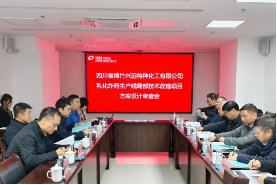 近日,四川省国防科工办组织召开江南化工绵竹兴远乳化炸药生产线局部技术改造项目方案设计审查会议。四川省国防科工办马光睿处长出席会议。