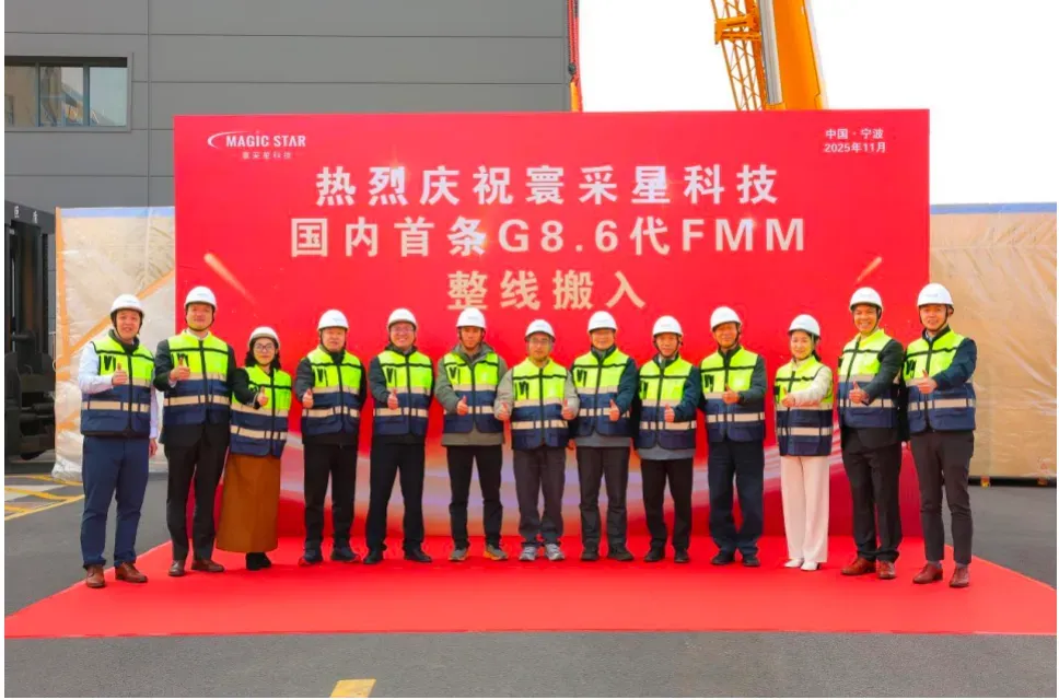 2025年11月,寰采星科技(宁波)有限公司于宁波工厂正式完成国内首条G8.6代FMM制造整线的搬入。