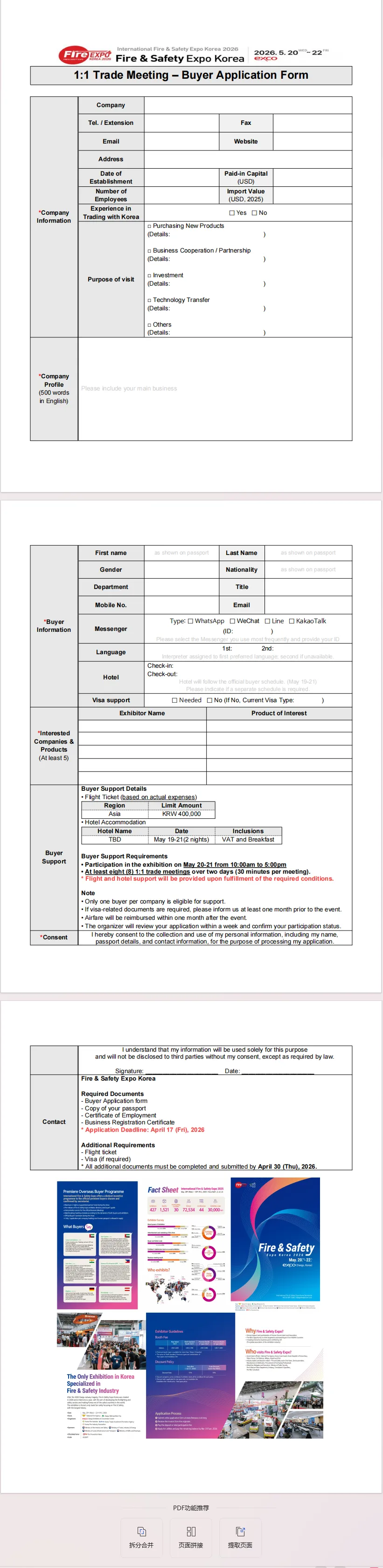 为促进中韩两国在消防安全、应急装备及安全产业领域的交流合作,中韩国际创新创业中心现组织中国企业及专业买家参加2026 韩国国际消防安全博览会(Fire & Safety Expo Korea 2026),现面向相关企业开展招募工作。具体事项如下: