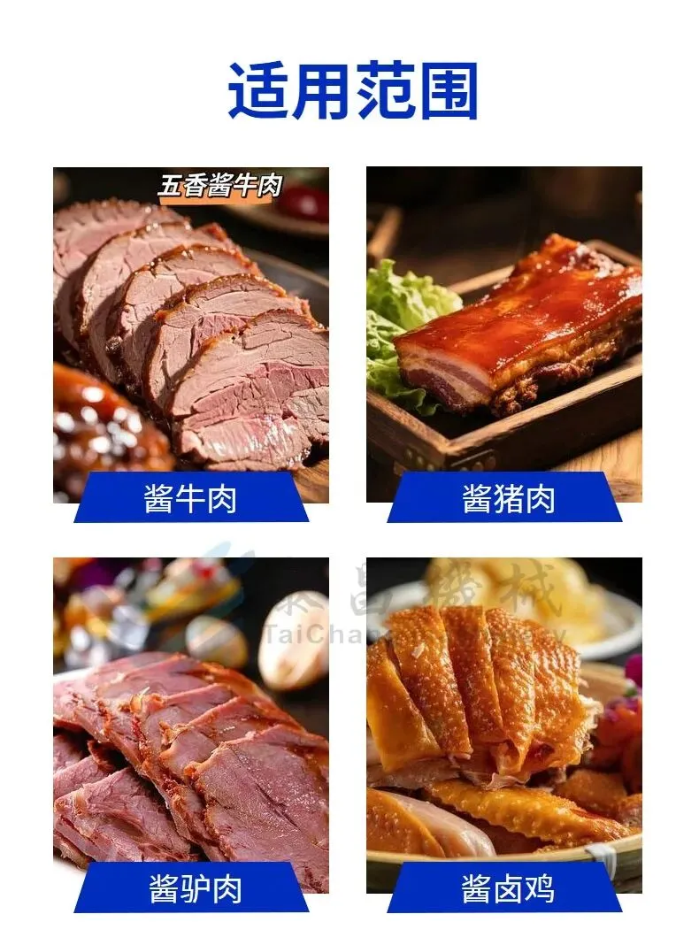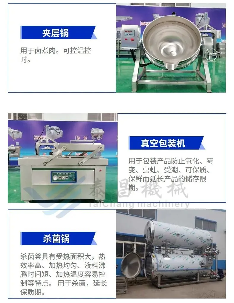 卤煮锅:用于酱牛肉的卤煮过程,通常采用蒸汽加热,确保温度均匀,提高卤煮效率。