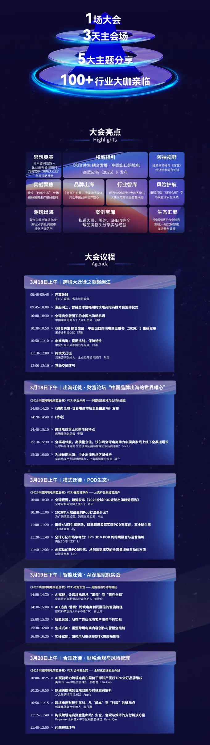 展会搭配丰富的论坛活动,包括2026全国综试区交流座谈会、2026全国跨境电商行业协会交流会、2026全国产业带对接会、2026亿级大卖专场对接会、2026海外本土货盘对接会、2026海外红人及MCN机构对接会、2026跨境电商全球机遇分享会、2026传统外贸转型跨境电商发展论坛、2026跨境电商合规化发展论坛、2026“卖家团队管理”大咖公开课、亚马逊全球开店专场论坛、TikTok Shop专场论坛、SHEIN专场论坛、阿里巴巴国际站专场论坛,以及2026中国跨交会“跨境之夜”Party等。