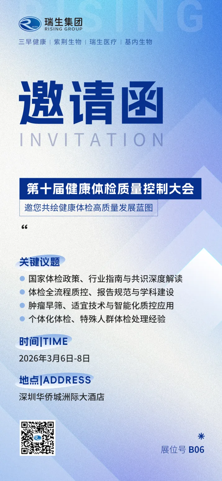 期待与您相聚深圳,共同探索健康管理新生态,为推进“早筛、早诊、早干预”的全民健康事业贡献力量。