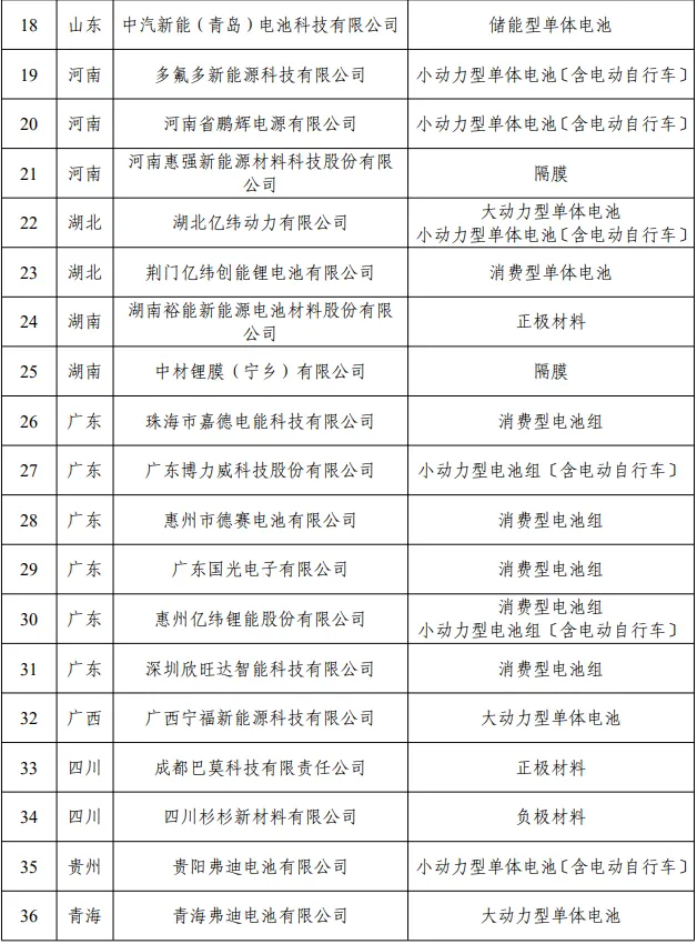 附件:符合《锂离子电池行业规范条件》企业名单(第九批)