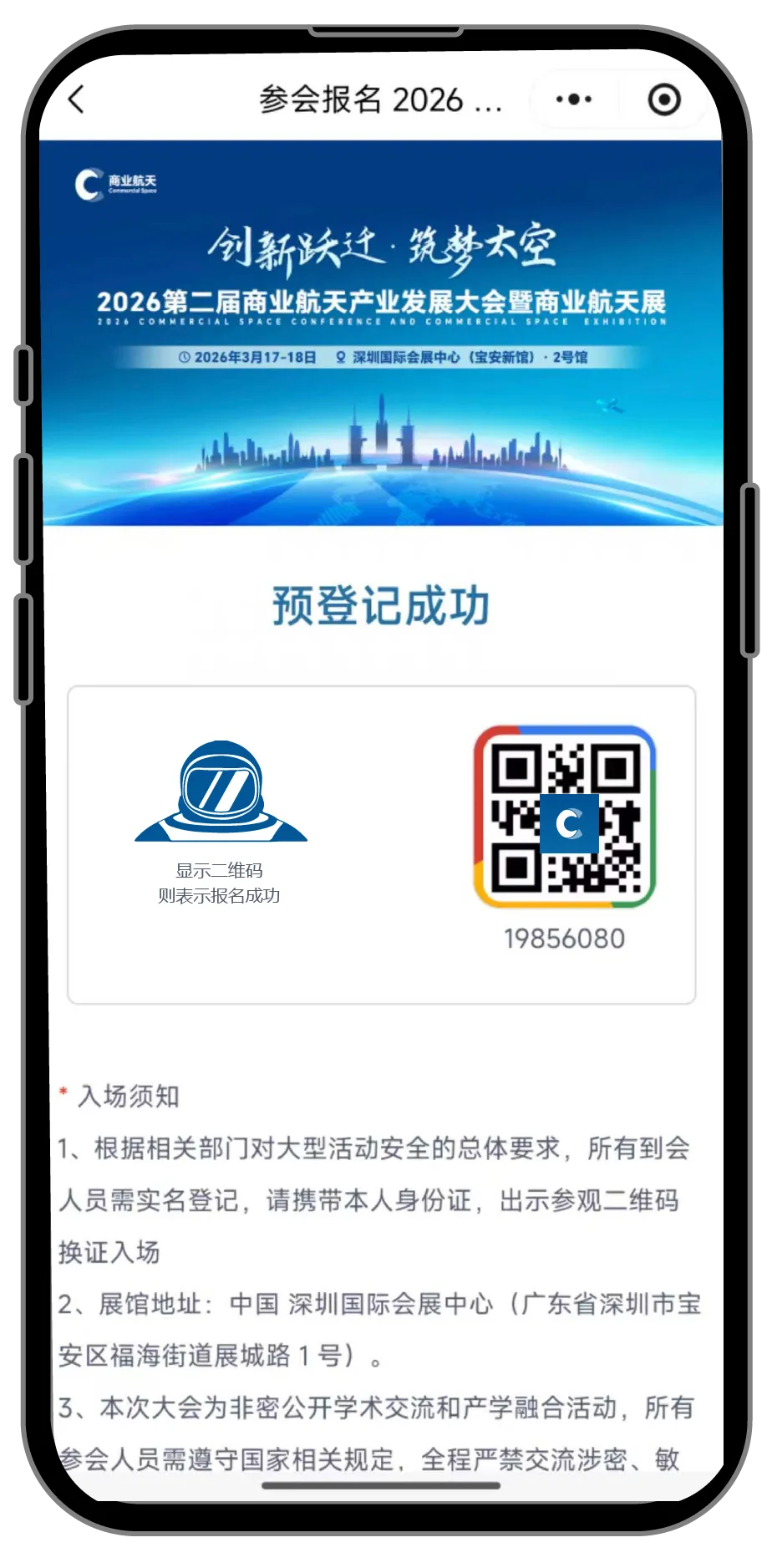 尊敬的嘉宾,欢迎您报名参与将于2026年3月17-18日在深圳国际会展中心宝安新馆2号馆盛大召开的2026第二届商业航天产业发展大会暨商业航天展。