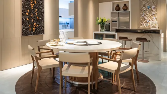 南洋迪克首次亮相中国家博会(广州),深耕高端实木家居领域二十余年,本次将以「领见生活」系列呈现其整装空间理念。展陈通过建筑化的体块穿插与光影引导,构建出层次分明的空间秩序,并在木、石、织物等材质的交织中,探索东方语境下理性与松弛并存的当代居住表达。