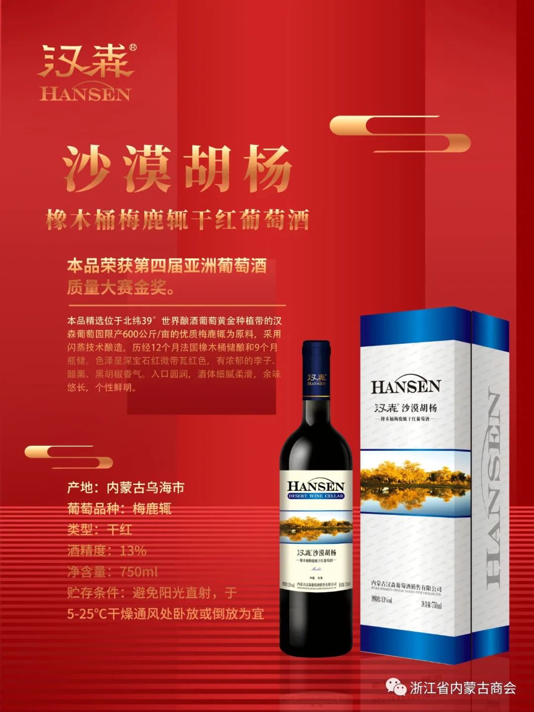 感谢内蒙古汉森酒业对浙江省内蒙古商会换届大会的支持