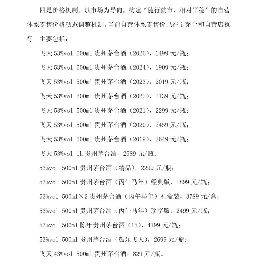 1月13日,茅台发布《2026年市场化运营方案》,推出“随行就市、相对平稳”动态定价机制,明确飞天茅台1499元基准价、陈年酒按年份梯度定价,同时搭建“自售+经销+代售+寄售”多元模式,打通五大渠道构建线上线下一体化新零售体系。