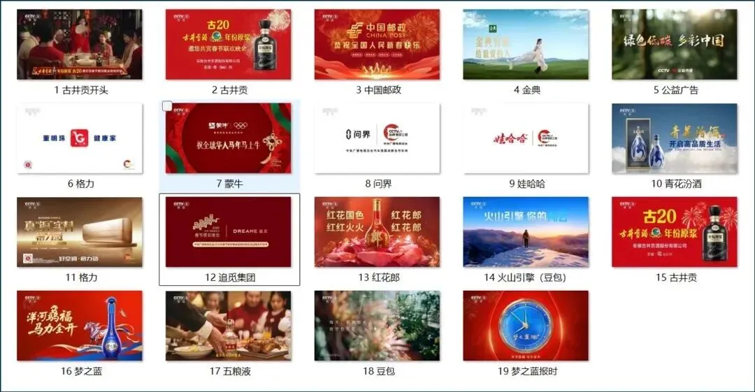 公开数据显示,直接冠名赞助商从2024年的9家降至4家(五粮液、洋河、古井贡酒、郎酒),叠加软性植入的茅台、汾酒、西凤、毛铺苦荞,参与酒企仍达8家。另,春晚开播前19个广告位中,白酒独占8席,仍以绝对性数量稳居C位。