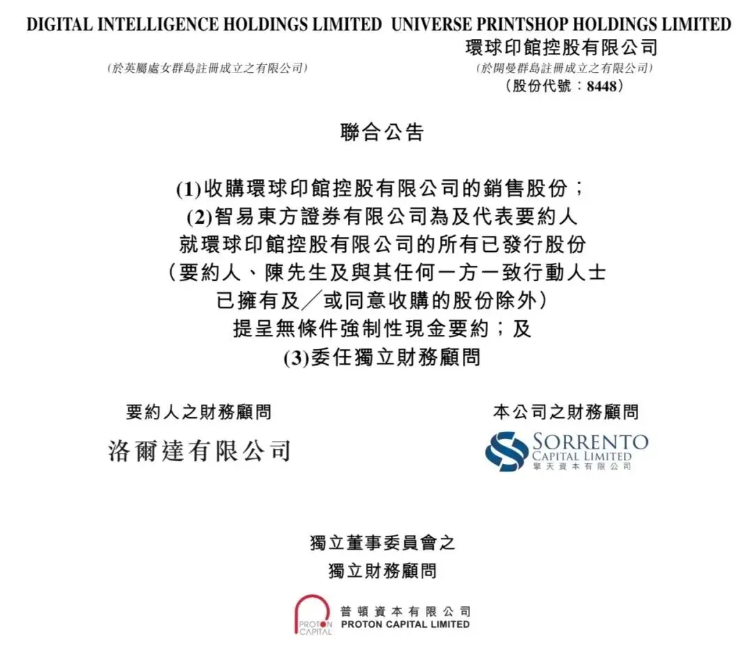 2月9日,港股公司环球印馆公告,名品世家董事长陈明辉通过全资公司收购其约65.54%股份,总价约2289万港元。