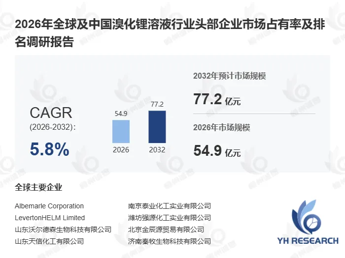 以下内容来自恒州诚思YHResearch出版的《2026年全球及中国溴化锂溶液行业头部企业市场占有率及排名调研报告》,同时提供英文,日文,韩文等不同语种版本报告。