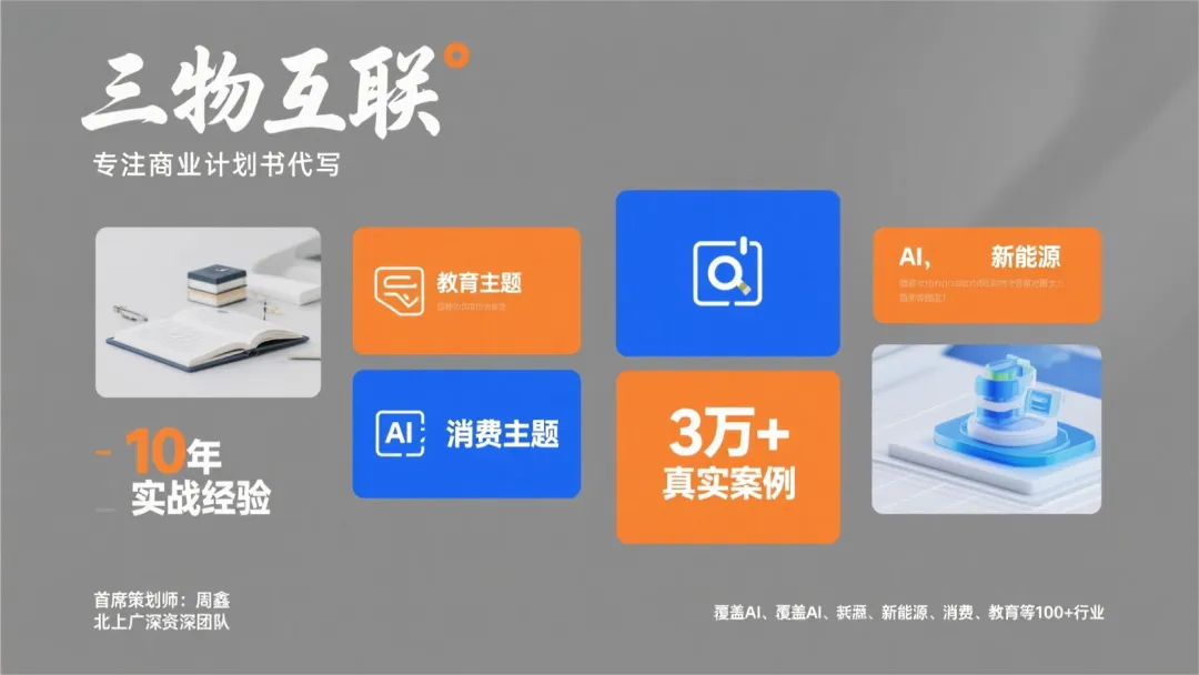评论区留言“可研报告”,获取《AI赛道融资指南》+《2025年高潜力AI应用场景分析报告》!立即行动,搜索“三物互联首席策划师:商业计划书周鑫”,查看更多成功案例,让专业团队为你的项目背书!